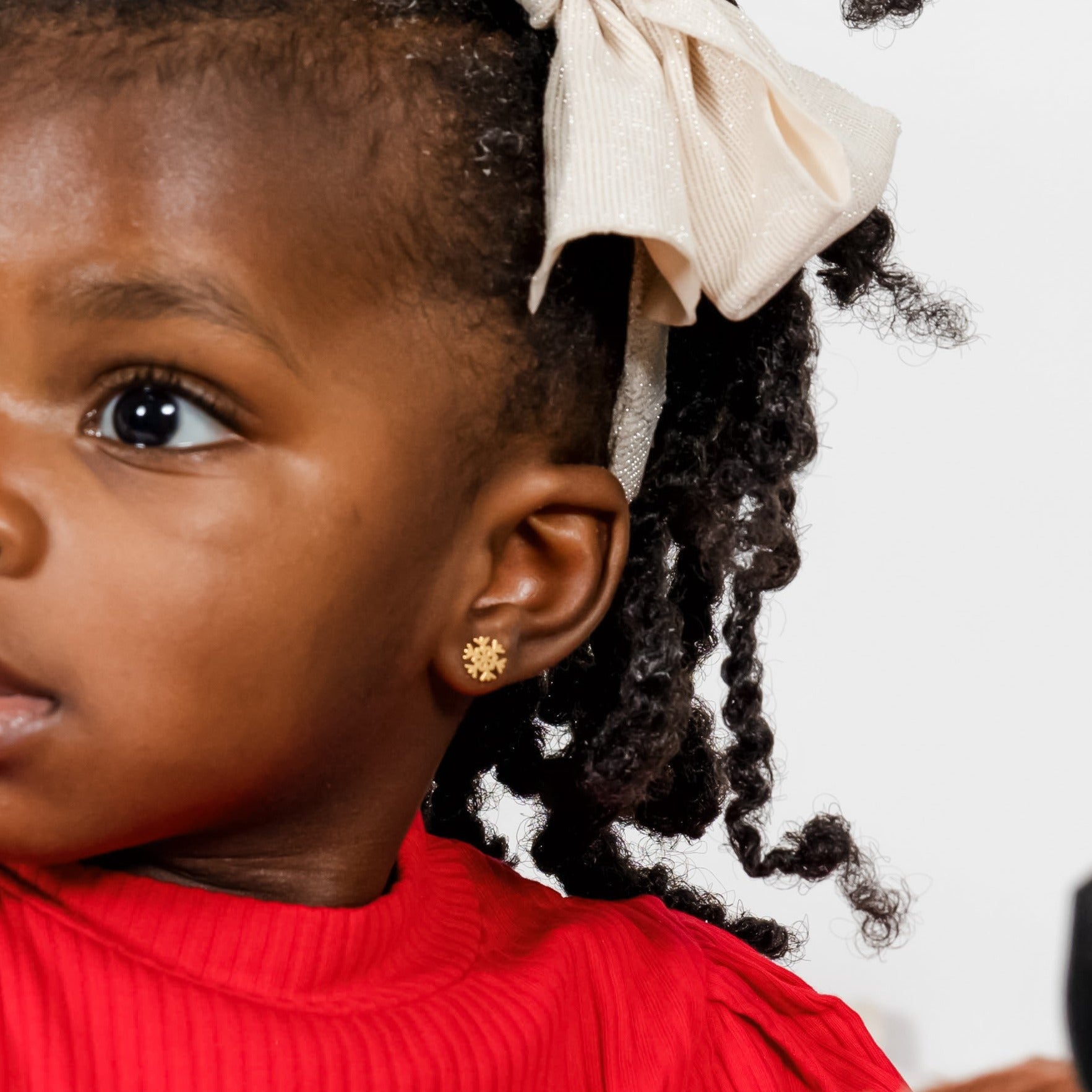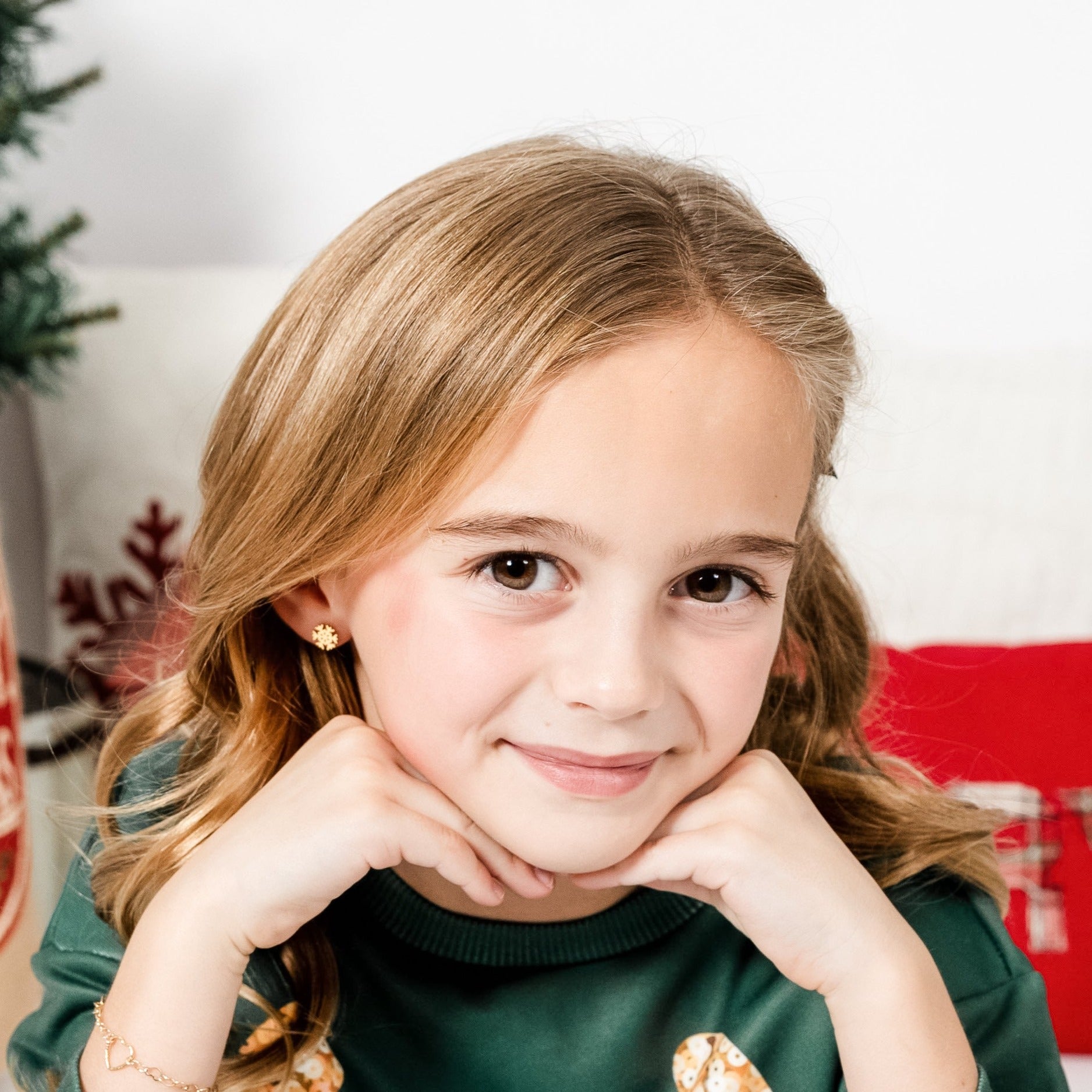 This the season to sparkle and shine with our Snowflake Flatback Studs screw back earrings. These glamorous earrings feature a sleek snowflake design made to help to keep up with the latest fashions of each season. These snowflake studs are made of surgical steel and plated with 18KT gold. They are also nickel, copper, and lead free and are perfect for anyone that is concerned about their sensitive skin. Our hypoallergenic materials in combination with our flat screw-back design allows you to be able to play, sleep, and sparkle confidently knowing that your favorite pair of earrings are comfortable, safe, secure, and most importantly won't irritate your skin.